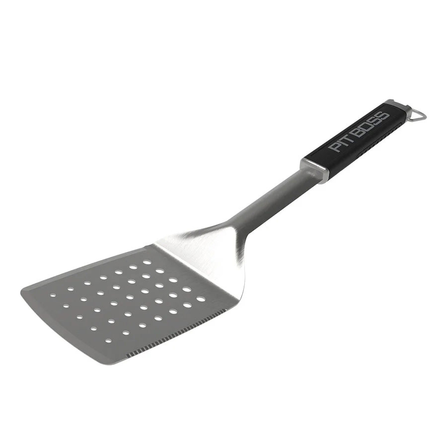 The Pit Boss Heavy-Duty BBQ Spatula is a griller's trusted sidekick, crafted from durable stainless steel to handle everything from juicy burgers to hefty briskets. Designed for performance and convenience, it features a surface hole pattern to quickly drain marinades, fats, or excess juices, ensuring clean transfers and perfectly grilled results. With a built-in bottle opener and a large loop for easy hanging, it’s a must-have for any barbecue setup. Dishwasher safe for effortless cleanup. WARNING: Cancer and Birth Defects or other Reproductive Harm – www.P65Warnings.ca.gov.