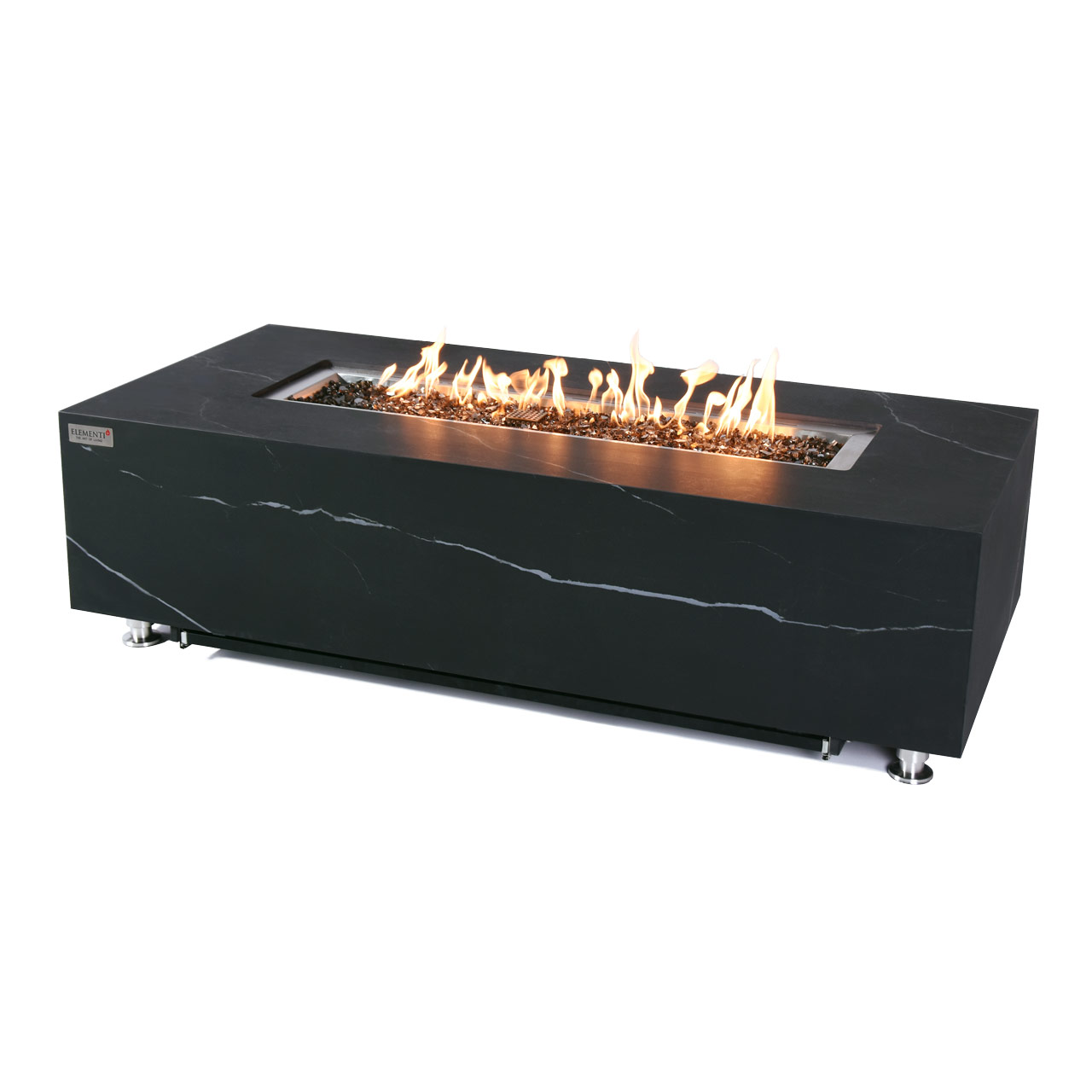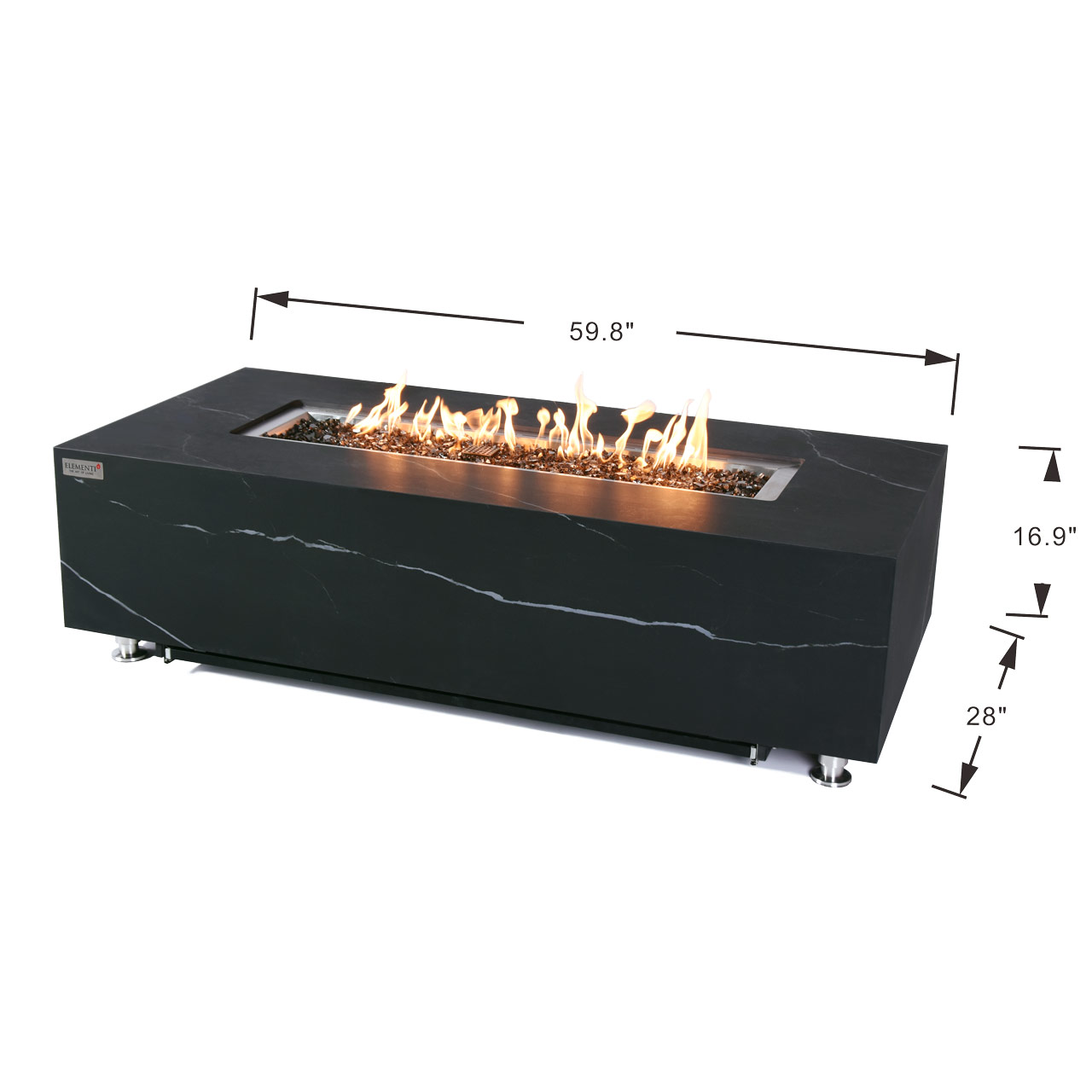 Make a bold statement in your outdoor living space with this premium fire pit, featuring a refined marble porcelain top and a durable metal frame for a clean, contemporary look. At the heart of the design is a powerful 30-inch burner housed in an I-type stainless steel pan measuring 41.3" x 11.3" x 2.2"—both constructed from 16-gauge, 304 stainless steel for long-lasting performance. With a heat output of up to 60,000 BTUs (16 KW for CE & UKCA) and a reliable push-button spark ignition system, this fire pit delivers both ambiance and warmth with ease. CSA, CE & UKCA certified and backed by a 2-year warranty, it’s designed for safety and peace of mind. Included with your fire pit are a porcelain lid (ONF06-121BB), 19.8 lbs of bronze fire glass, a canvas cover, repair grout/touch-up kit, 10? hose, and a AAA battery—everything you need for a stylish and ready-to-use centerpiece. WARNING: This product can expose you to chemicals which are known to the State of California to cause cancer and birth defects or other reproductive harm. For more information, go to www.P65Warnings.ca.gov