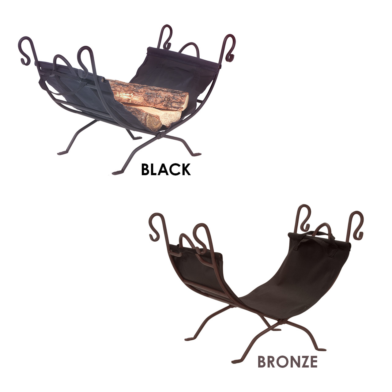 The Dagan Wrought Iron Log Holder provides a durable and stylish solution for storing and transporting firewood. Made from high-quality steel with a black canvas carrier, this log holder is built to last and is available in black or bronze finishes. The canvas bag features convenient handles for easy carrying from the storage holder to your fireplace. Neatly stack your logs in this sturdy log holder, which measures 26.75 x 14 x 17.5 inches (L x W x H) and weighs 11 pounds.