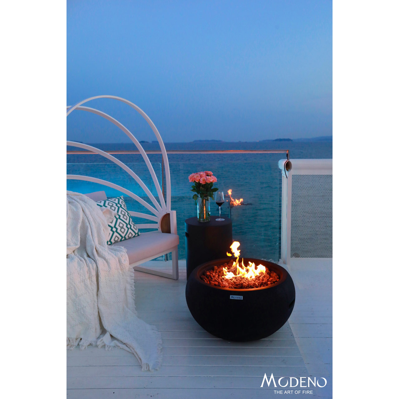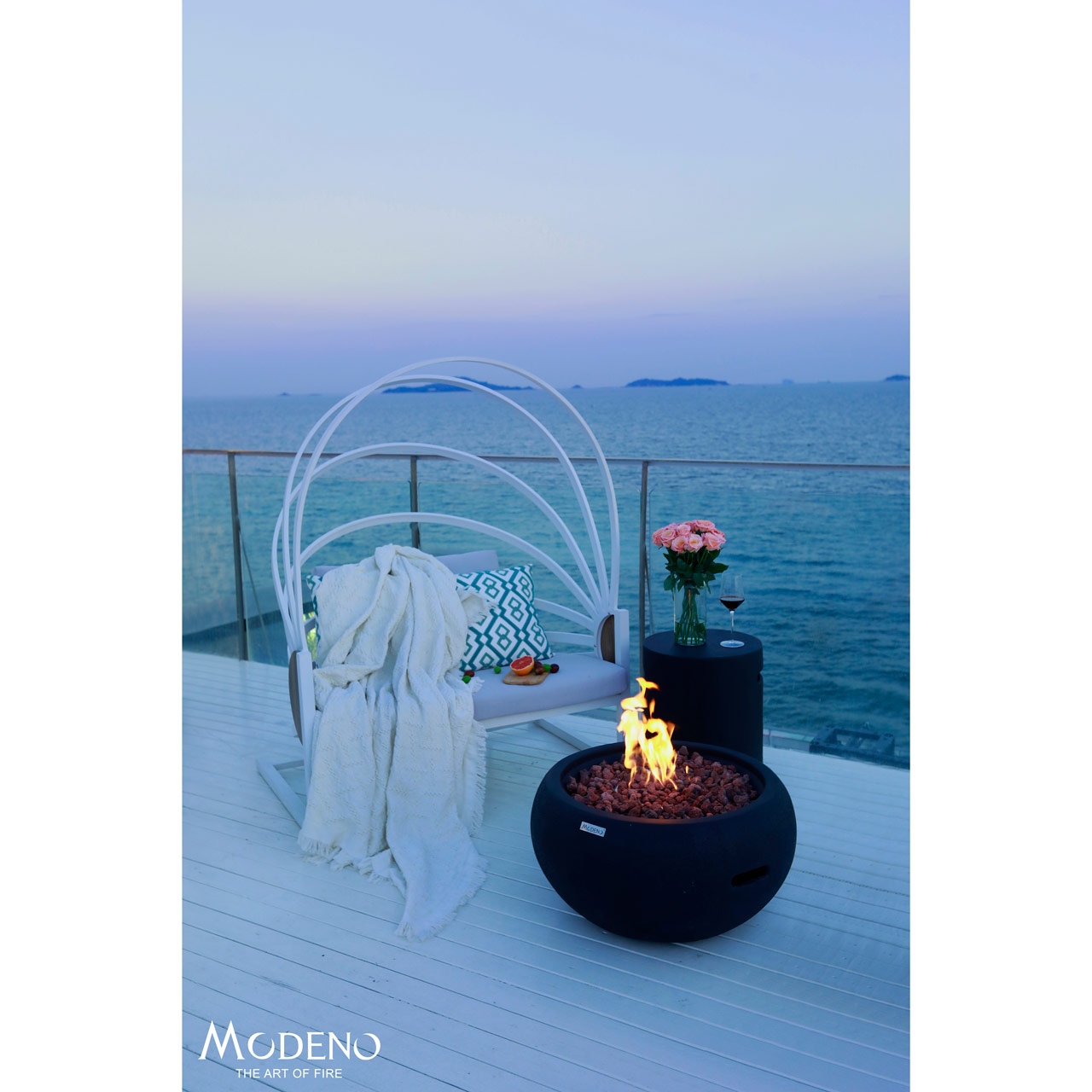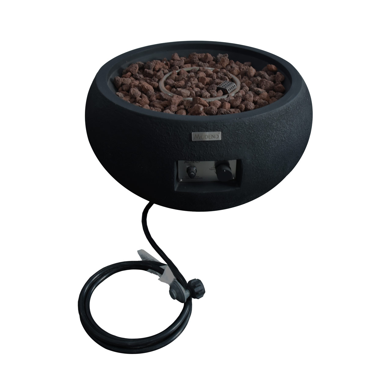 This beautifully rugged fire bowl is crafted from glass-fiber reinforced concrete, shaped into a wide, inviting basin and finished with a bush-hammered texture that feels as natural as weathered stone. At its heart lies a push-button spark ignition system that summons dancing flames with a single press, releasing up to 40,000 BTUs of glowing warmth—ideal for cool evenings under CSA, CE, or UKCA skies. Nestled inside the bowl, 13.2 pounds (6 kg) of included lava rock cradle the fire, enhancing its earthy charm, while a tailored PVC cover keeps your elemental centerpiece protected when the flames take a break. WARNING: This product can expose you to chemicals known to the State of California to cause cancer and birth defects or other reproductive harm. For more information, visit www.P65Warnings.ca.gov.